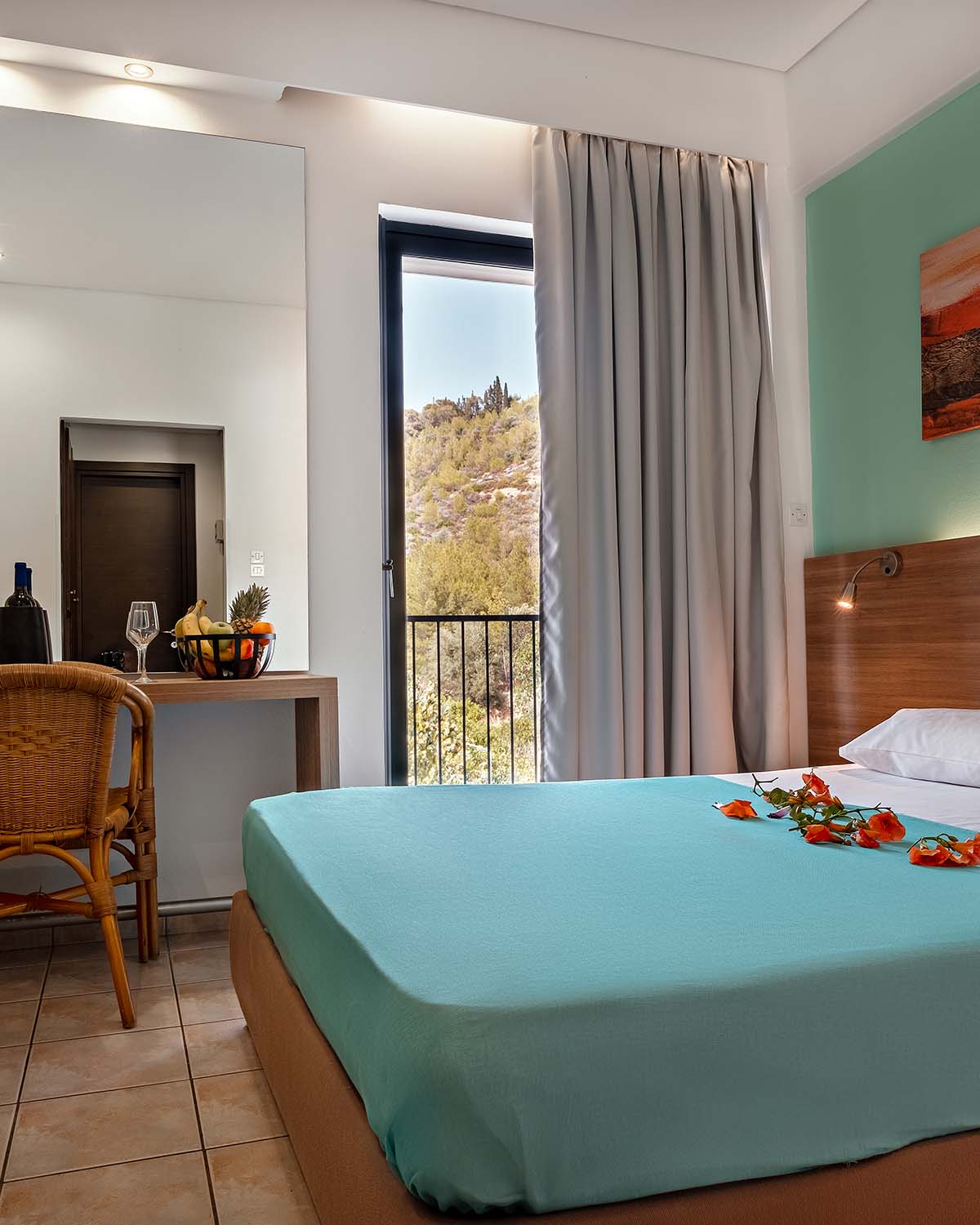 Απολαύστε τη θέα στο γαλήνιο βουνό από το ιδιωτικό σας μπαλκόνι και ανανεώστε τις αισθήσεις σας μέσα από τη φυσική ομορφιά που περιβάλλει το ξενοδοχείο μας.